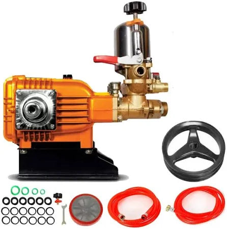 Equipped with a powerful brass triplex plunger pump, it delivers consistent and strong pressure for spraying pesticides, herbicides, and fertilizers over wide areas.