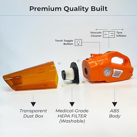 Ensures complete cleaning of car interiors. The dual-suction vacuum cleaner is useful for both wet and dry cleaning. Absorbs spilled liquid and also cleans the dry trash, dust & crumbs.