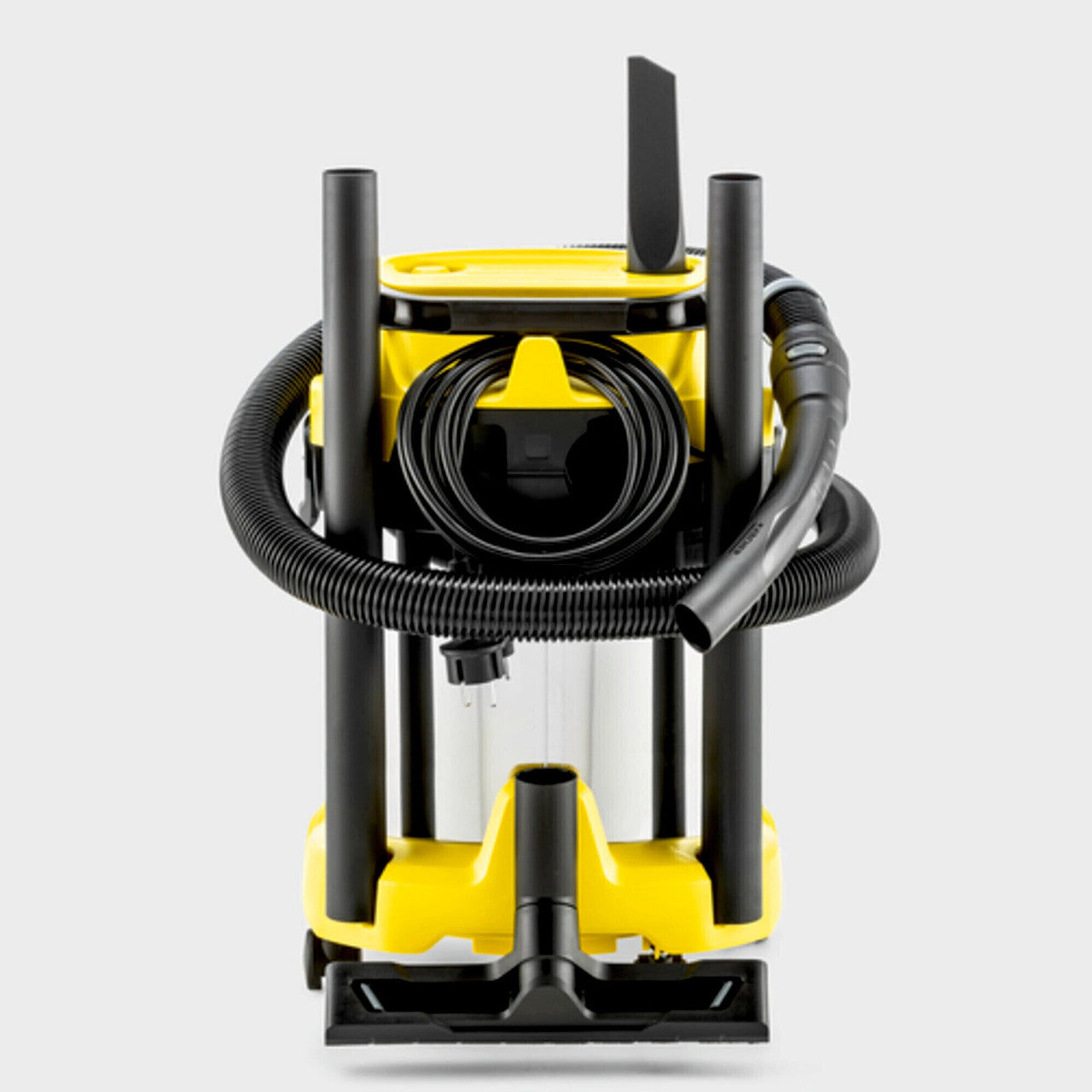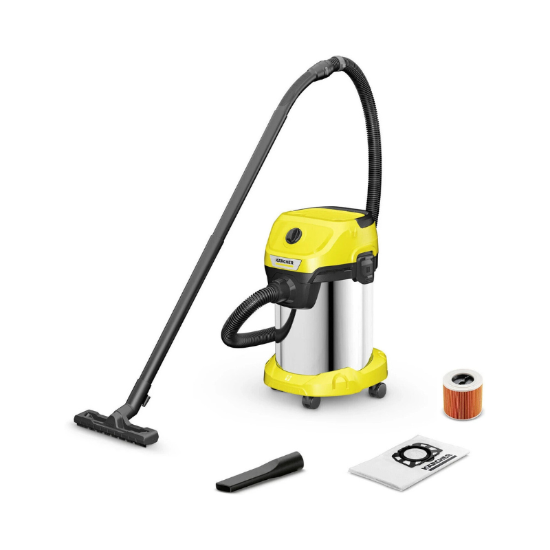 The Kärcher WD 3 S V-19/4/20 is a compact yet powerful wet-and-dry vacuum cleaner that packs efficiency and smart design into a minimal footprint. With a 1,000 W motor and a durable 19 L stainless steel tank, it effortlessly handles both fine dust and wet debris using a one-piece cartridge filter—no filter changes required. Space-saving features like integrated hose/cable storage, a blower function, and detachable handle for direct accessory use make it highly user-friendly and versatile.